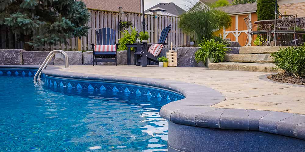 The pool surround matches perfectly with the custom interlocking patio, creating a cohesive design that unifies the entire backyard.