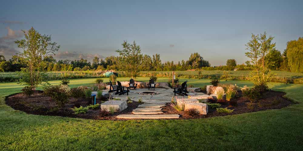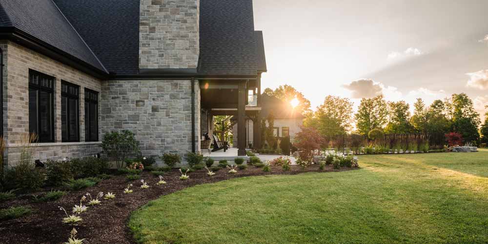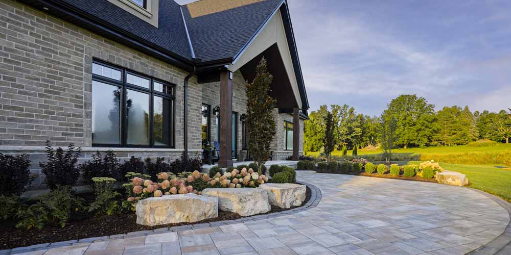 This large Clarington, Ontario custom build home, on a ten-acre property and unique corner lot, required a very strategic design planning and design elements to accomplish their hardscaping and landscaping dreams.