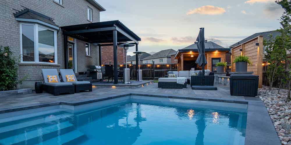 These included the inground pool (with coping), a custom designed interlocking patio stone deck, two-level dining patio with a custom pergola and protected roof, lighting, fencing and a custom designed, multi-use cabana (with washroom).
