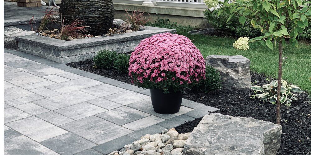 We created a simple, yet stunning ground-level garden space to accent their front yard – placing River Rock, Armour Stone and a Circular Water Feature.