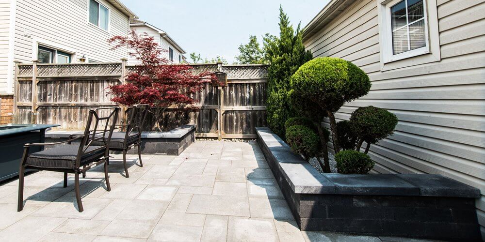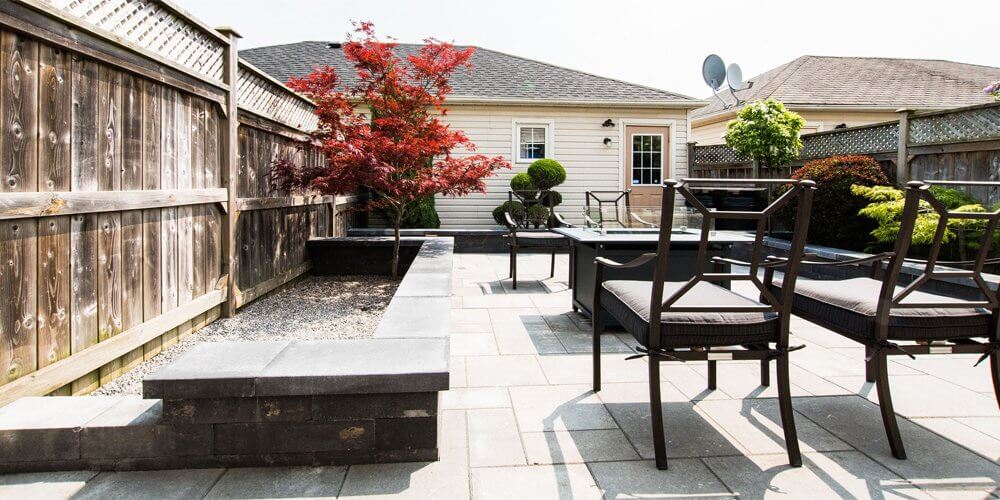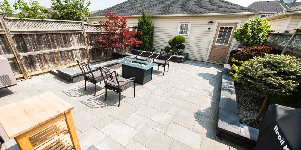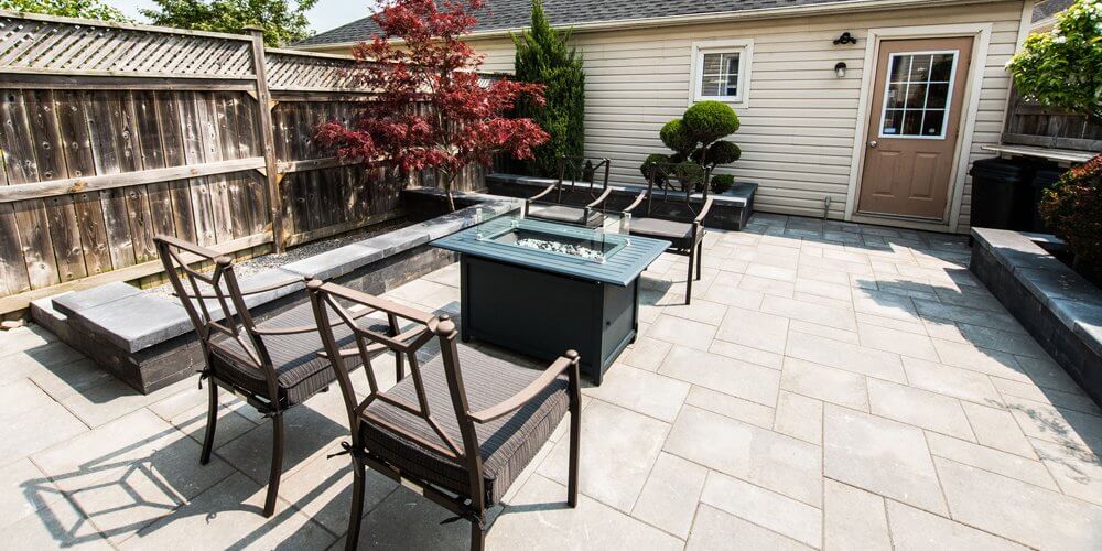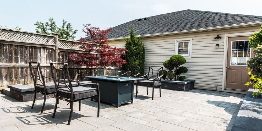 With just 750 square feet of space to work with, this patio now boasts a sitting area, raised gardens, Natural Stone steps and natural gas fire area.